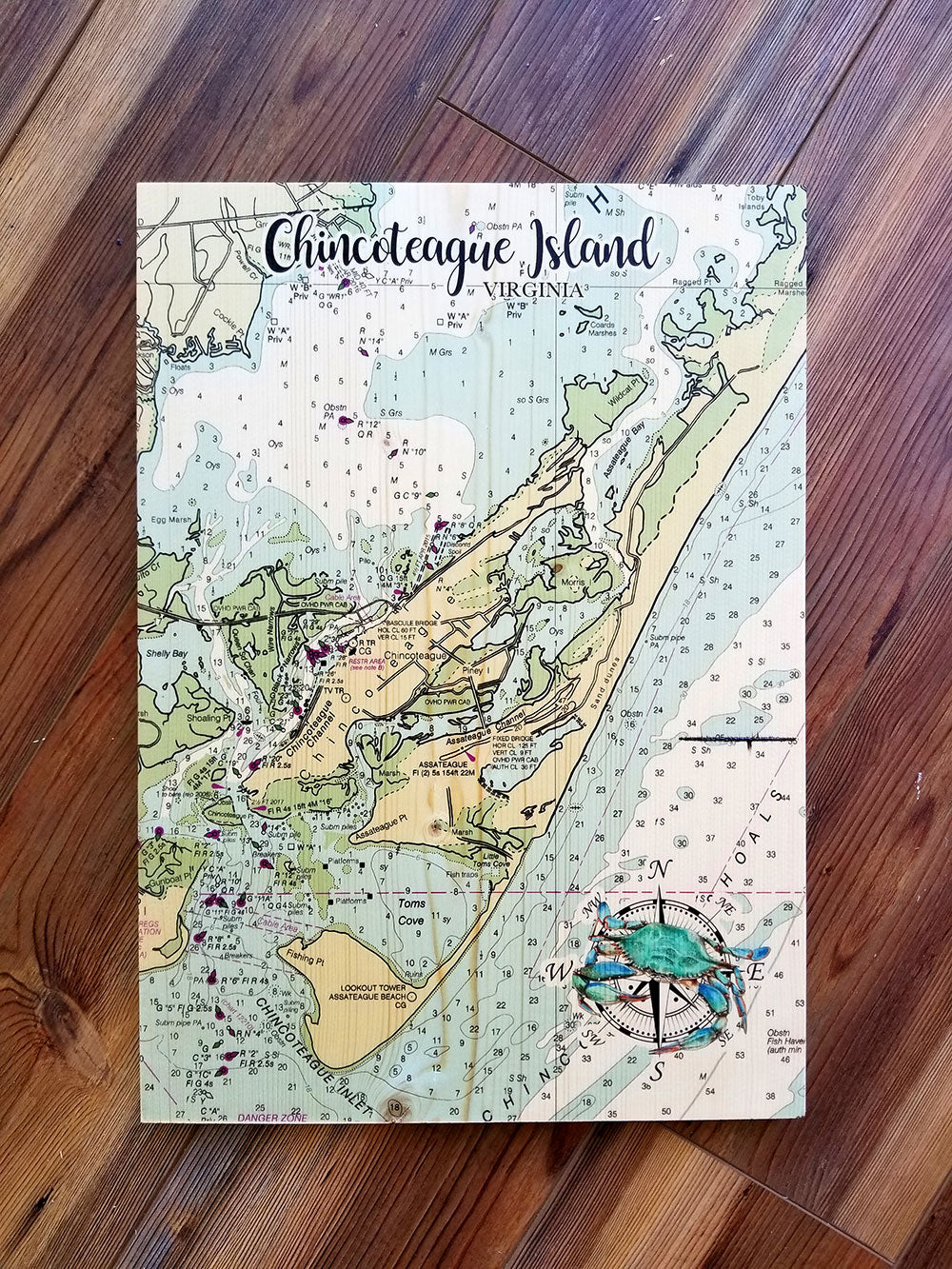 Chincoteague Island Virginia Map Print Beach House Decor Travel