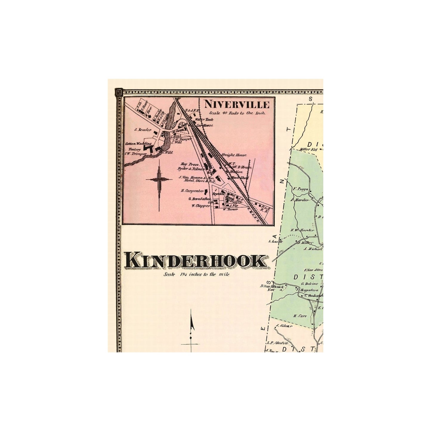 Historic City Map Kinderhook New York Beers 1873 23 x 29.18